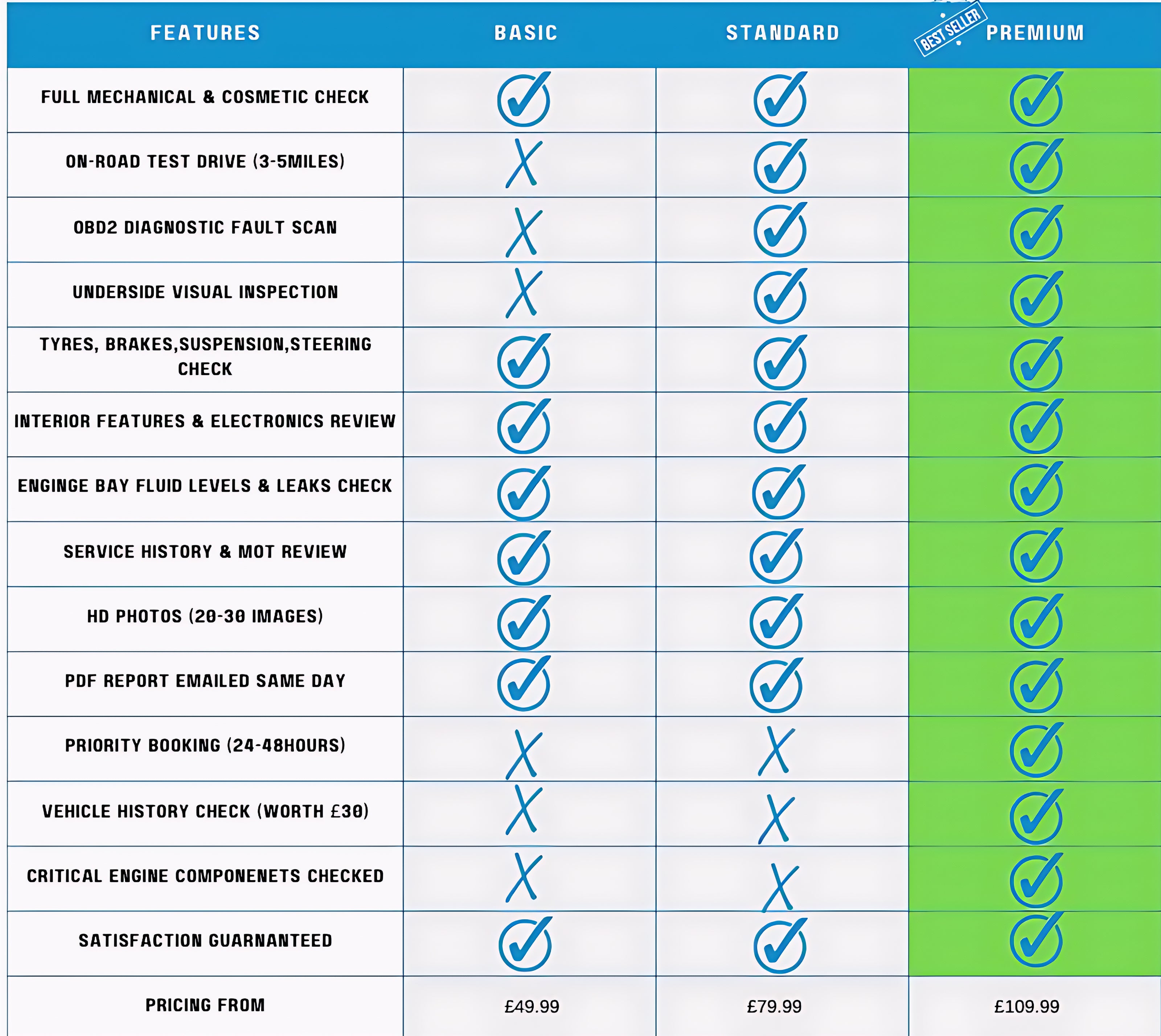 Compare Our Inspection Packages – Choose the Right Fit for Your Car