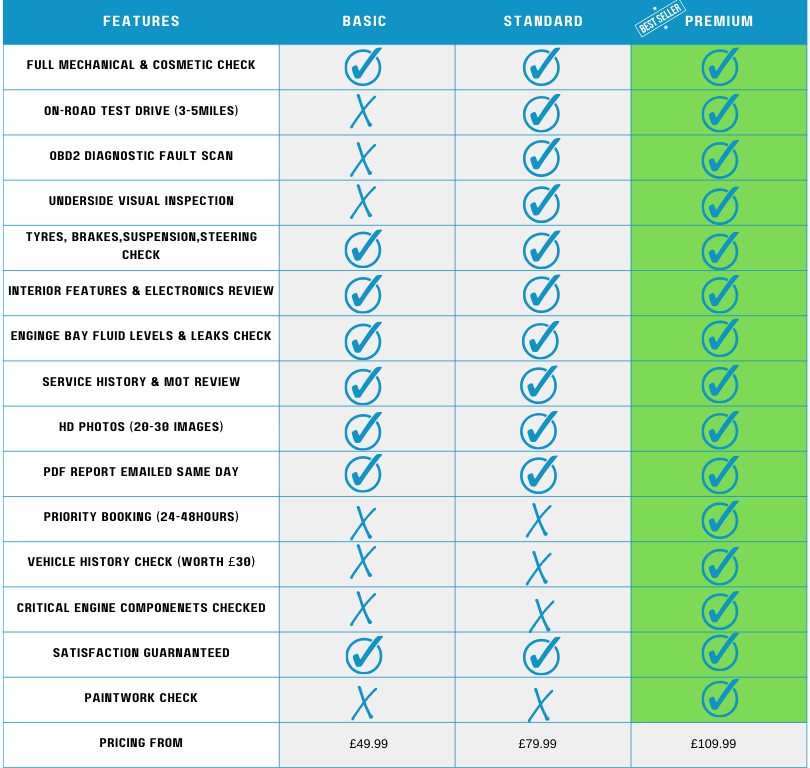 • Deep diagnostic reports or 60+ point inspections (see Premium option)